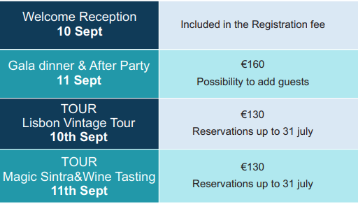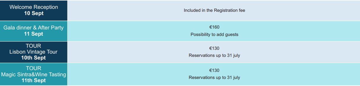 • Welcome reception on September 10th, 2026 – Attendance at the Welcome Reception is restricted to registered delegates only. While the ticket is included in the registration fee, prior registration is required, as attendance is limited to 600 participants due to venue capacity.